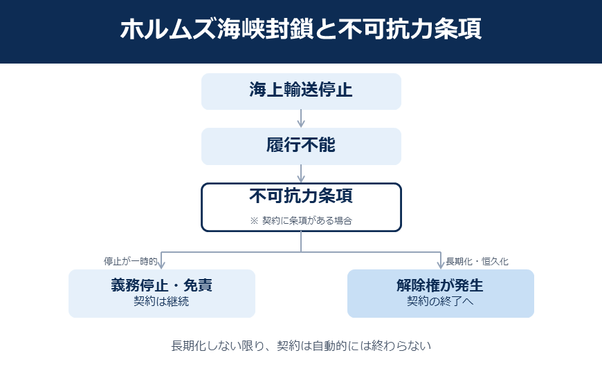 1. はじめに 「原材料が届かない」「納期が守れない」「調達価格が上がりすぎて、作れば作るほど赤字だ」 2026年2月末のホルムズ海峡封鎖以降、日本の製造業を中心に、こうした声が広がっています。重油の調達困難を理由にした工場稼働停止、石化コンビナートの減産、物流コストの急騰——サプライチェーン契約は […]